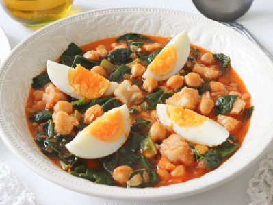 El potaje de garbanzos de Semana Santa es otro de los platos típicos de estas fechas tan religiosas. Para su preparación, lo mejor es usar ingredientes frescos y de la mejor calidad posible. Un buen bacalao salado de calidad y unos buenos garbanzos. En general, lo que necesitamos son 500-600 gramos de garbanzos; 400 gramos de bacalao en salazón (lo tenemos que desalar); 400 gramos de espinacas; 3 huevos duros; 2 cebollas; 1 cucharada de pimentón dulce; 4 dientes de ajo; 2 zanahorias; 1 puerro; 1 hoja de laurel; sal al gusto (cuidado con este ingrediente porque el bacalao puede aportar toda la sal y podemos pasarnos) y aceite de oliva de calidad.
